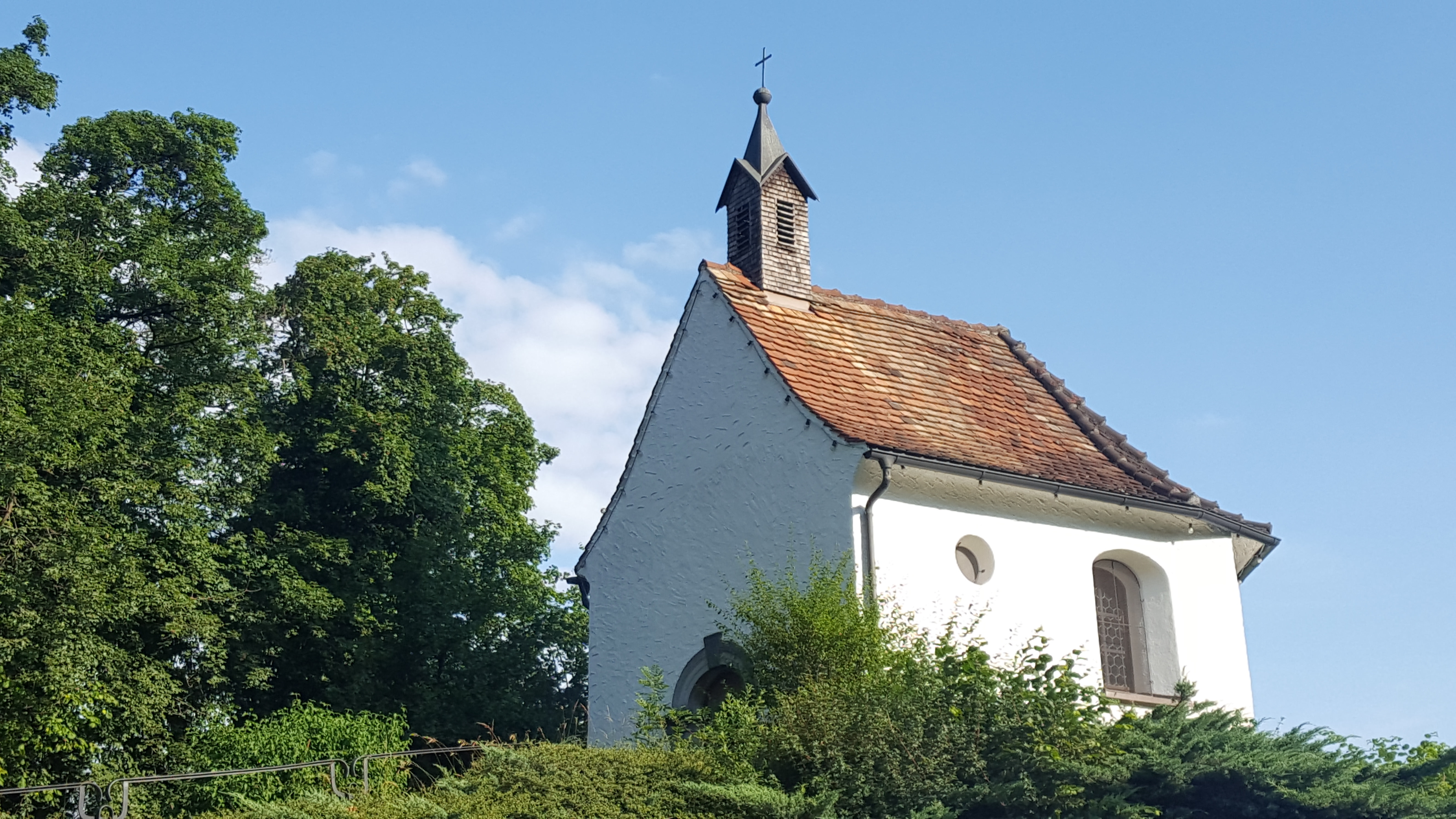 - Proseguire sul marciapiede sinistro di questa strada fino all'uscita della città contrassegnata da una fabbrica (a destra) e da una cappella (a sinistra). Girare a sinistra per uscire dalla strada e seguire il fondo della scogliera. Ritornare sulla strada alla rotonda, proseguire a sinistra e prendere la prima strada a sinistra (Römerweg con cartelli indicatori).